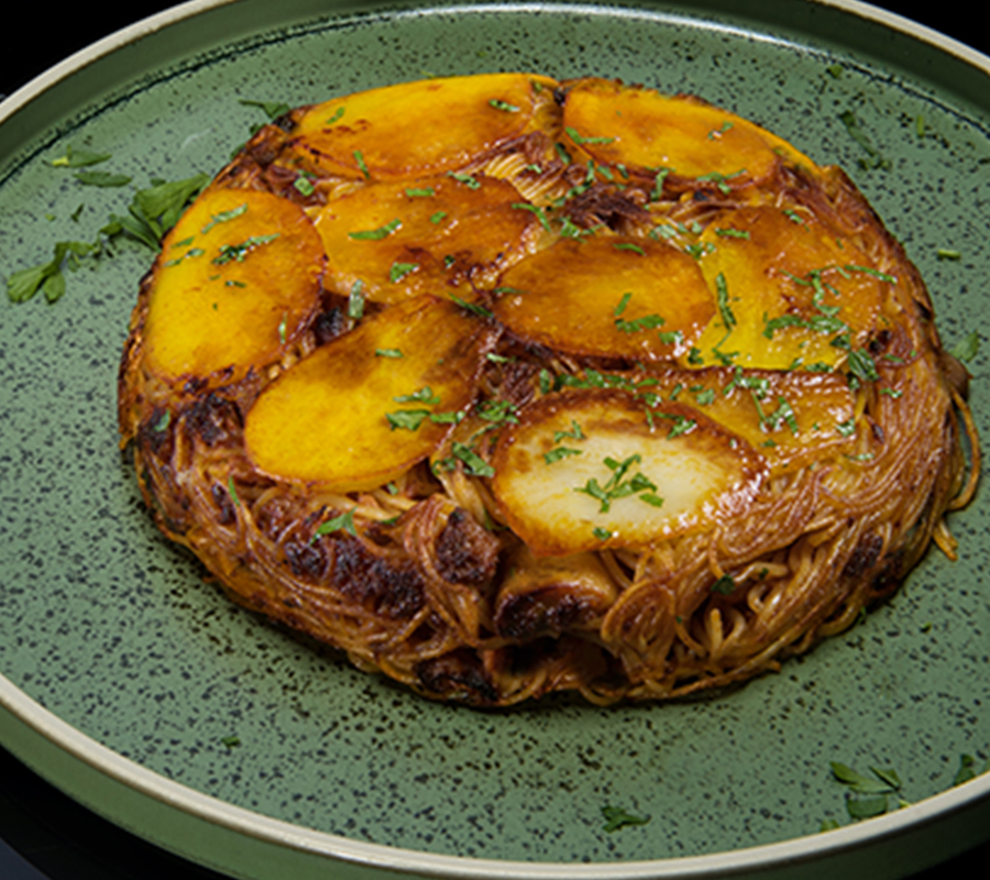 ترکیب آشنای گوشت چرخ کردهی بره با سس مخصوص و تهدیگ سیب زمینی در مهروماه یکی از لذیذترین ماکارونیهایی است که به خاطر خواهید سپرد که با سینی مخصوص ایرانی شامل ماست و خیار، ترشی، سالاد شیرازی و سبزی خوردن است .