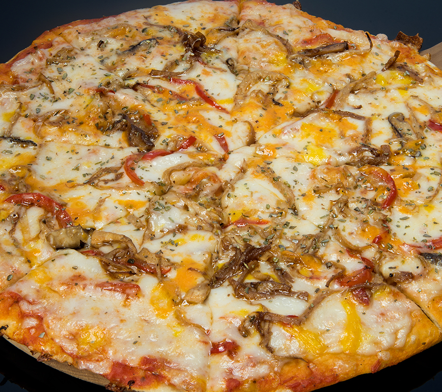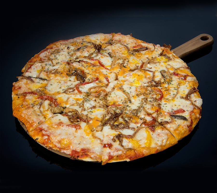 انتخابی مناسب برای علاقمندان به غذای گیاهی همراه با قارچ صدفی، فلفل دلمهای، پیاز، پنیر کشدار و اندکی سس باربیکو.